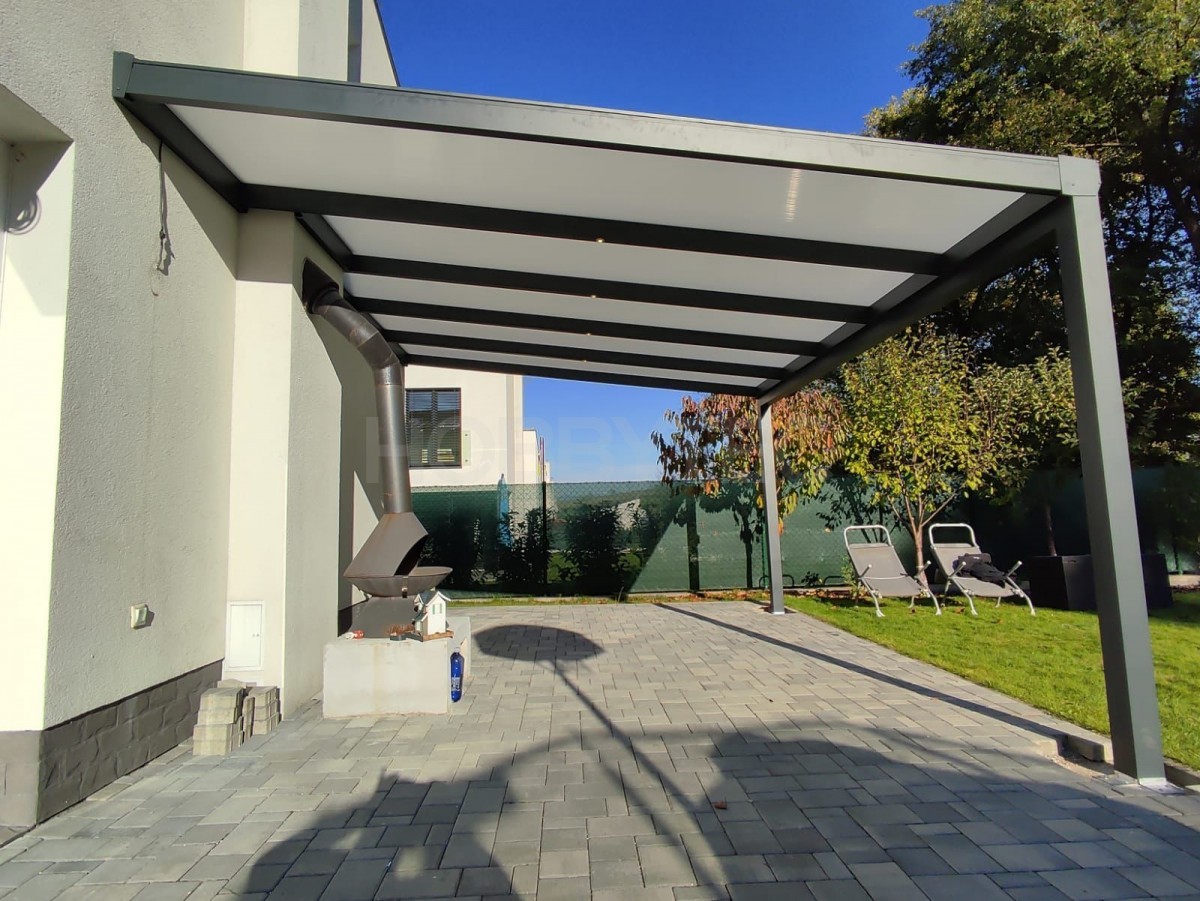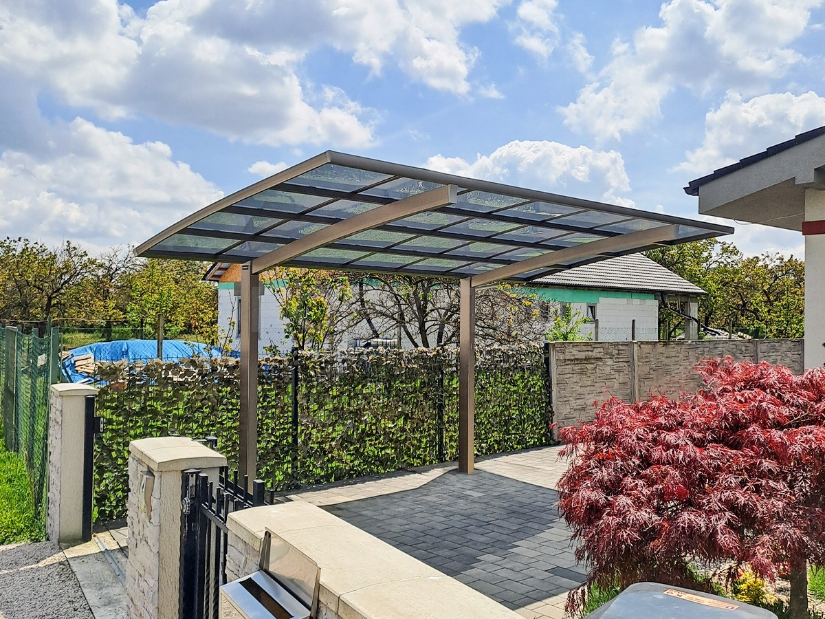 Hliníková konstrukce přístřešku nekoroduje a nevyžaduje opakované nátěry. Dlouhodobě chrání lak a interiér vašeho vozu před UV zářením, kroupami i sněhem. Díky modernímu designu má přístřešek i estetickou hodnotu. Je zajímavým doplněk u novostaveb i klasických domů.